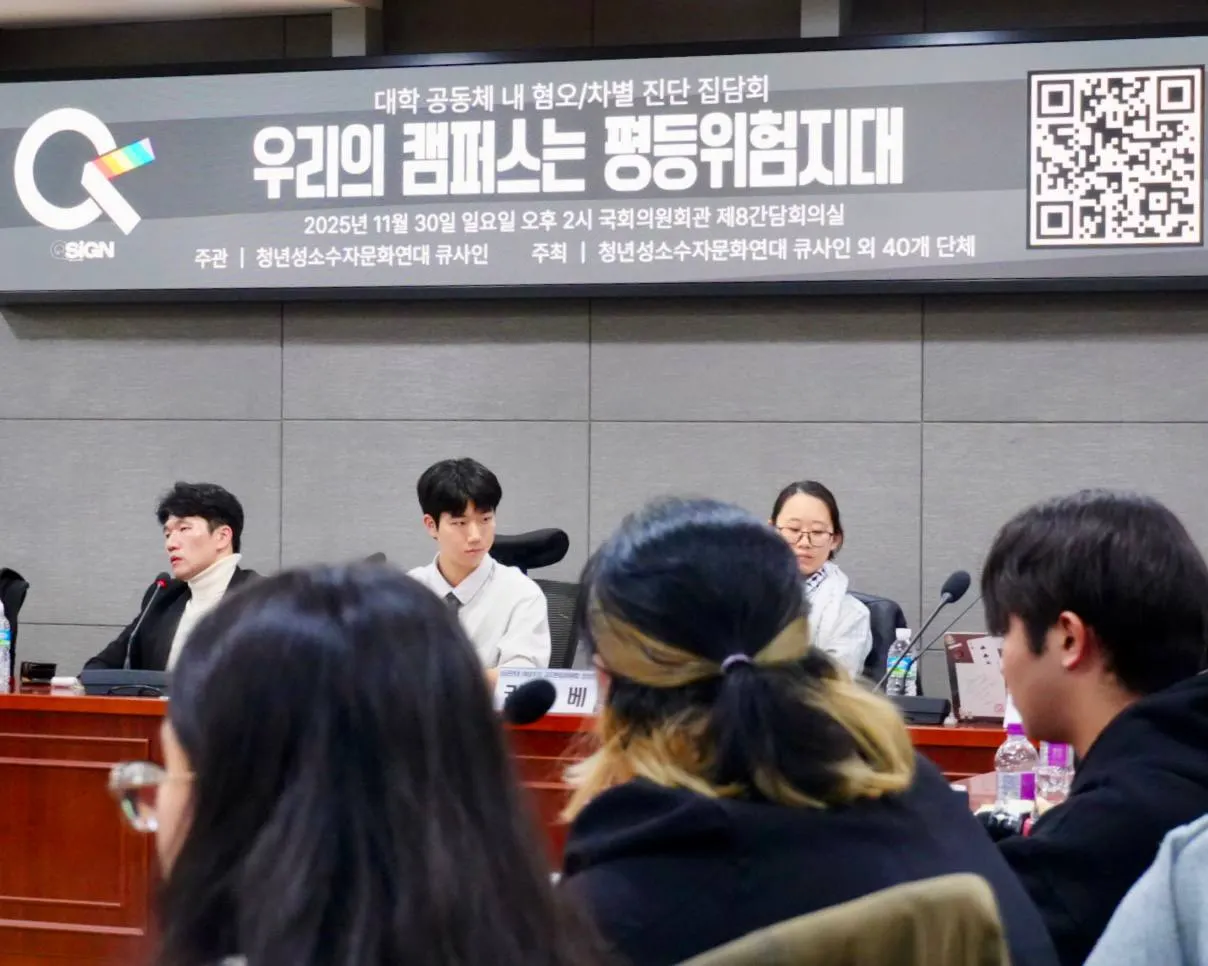 지난 일요일, 국회에서 ‘대학 공동체 내 혐오/차별 진단 집담회 《우리의 캠퍼스는 평등위험지대》’ 가 개최되었습니다. 청년성소수자문화연대 ‘큐사인’이 주관하고, 저희 ‘다움’을 포함한 총 38개 단위가 공동 주최로 이름을 올린 뜻깊은 자리였습니다.