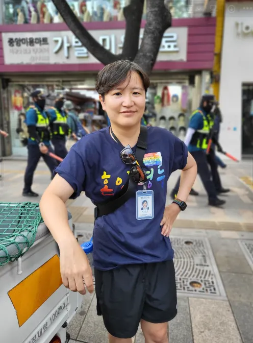 혼인평등 티셔츠를 입은 류민희 활동가