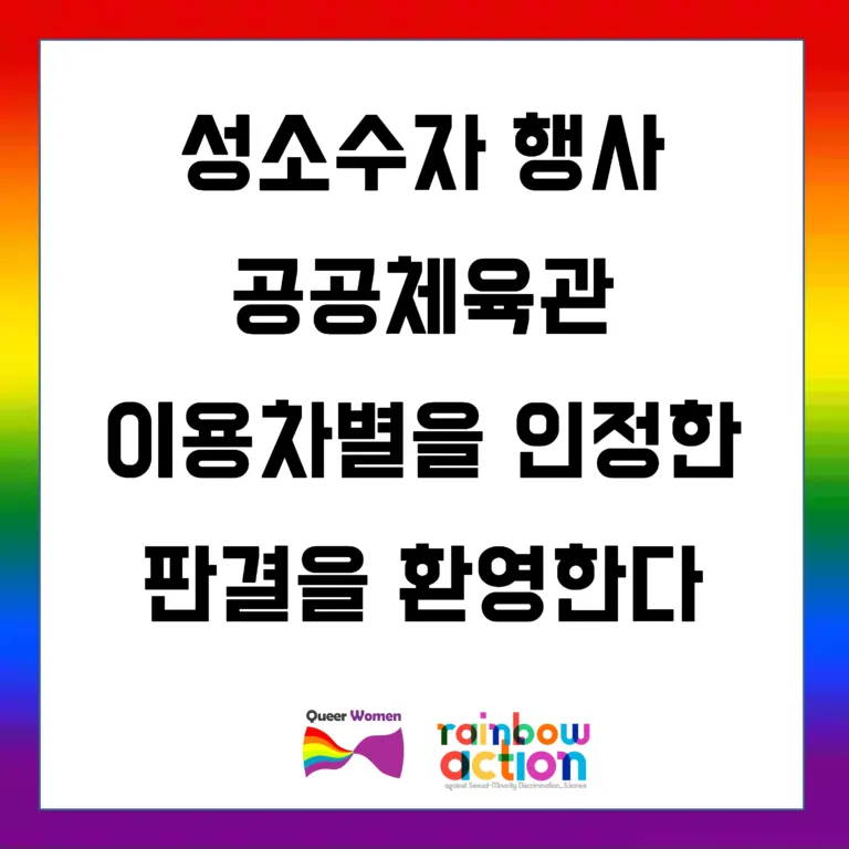 성소수자 행사 공공체육관 이용차별을 인정한 판결을 환영한다