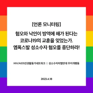 [언론 모니터링] 혐오와 낙인이 방역에 해가 된다는 코로나19의 교훈을 잊었는가. 엠폭스발 성소수자 혐오를 중단하라