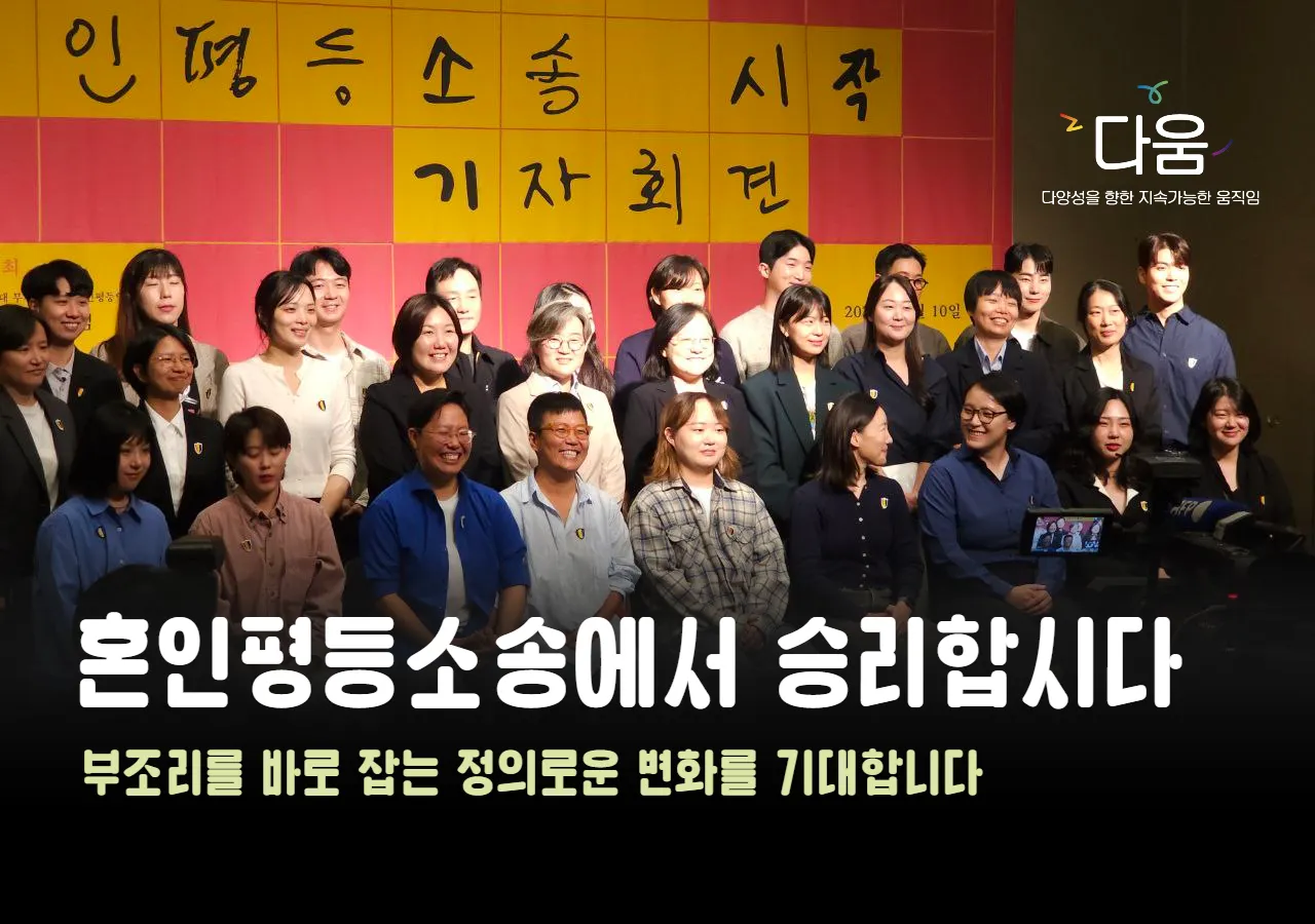 수줍은 지지도 좋지만, 명시적이거나 육성이 담긴 적극적인 지지가 필요한 때입니다. 혼인평등소송에 나서는 우리 모두 힘 나는 이야기를 나눠봅시다. 혼인평등소송, 꼭 승리합시다.