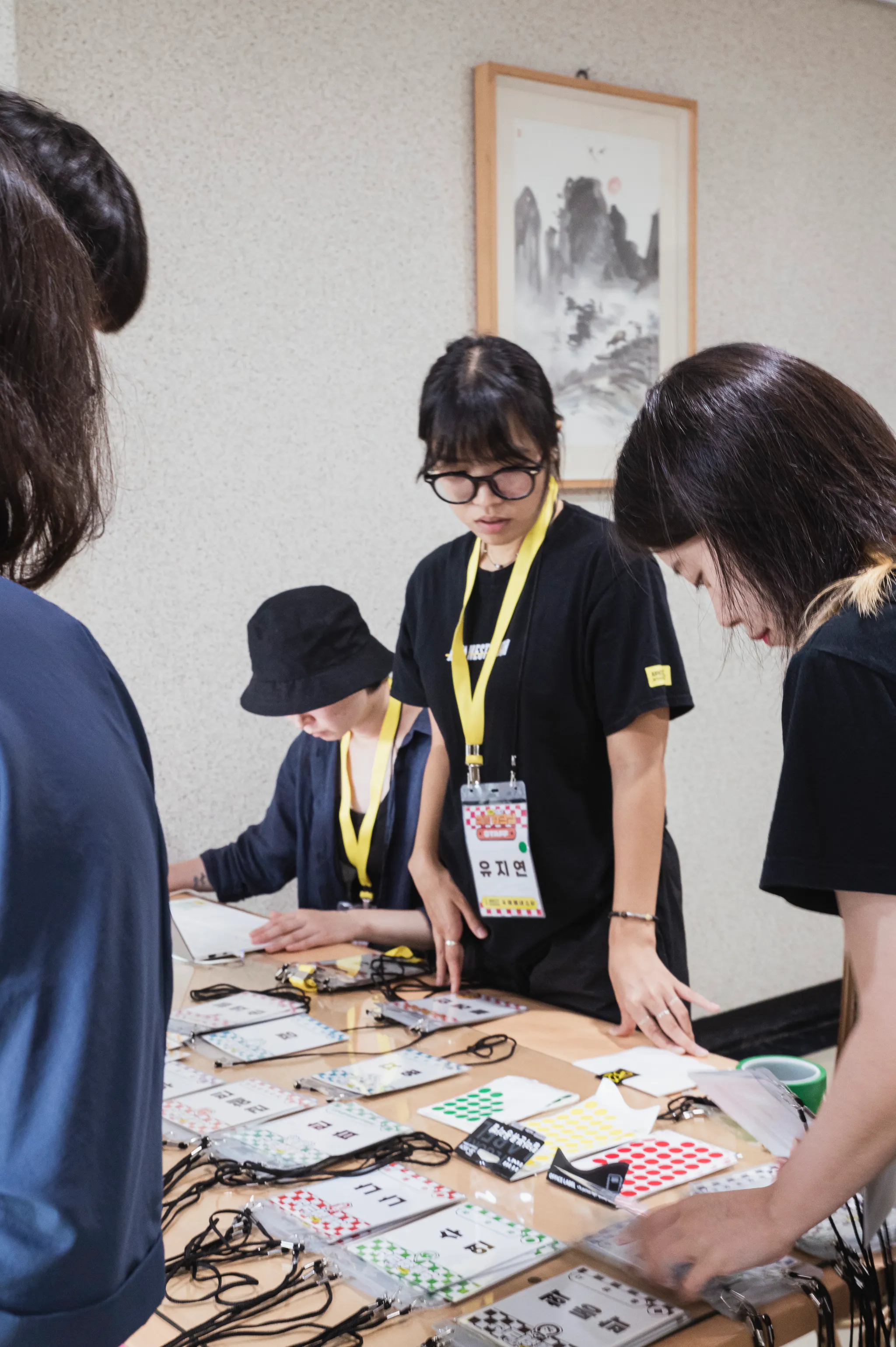 열심히 참가자 등록을 돕고 있는 앰네스티 팀원들