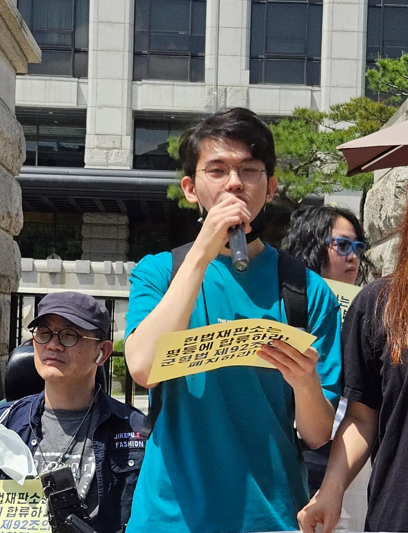 안녕하세요. 군형법 제92조의6이 성소수자에게 미치는 문제점에 대해 발언할, 다양성을 향한 지속가능한 움직임, 다움 활동가 기진입니다.