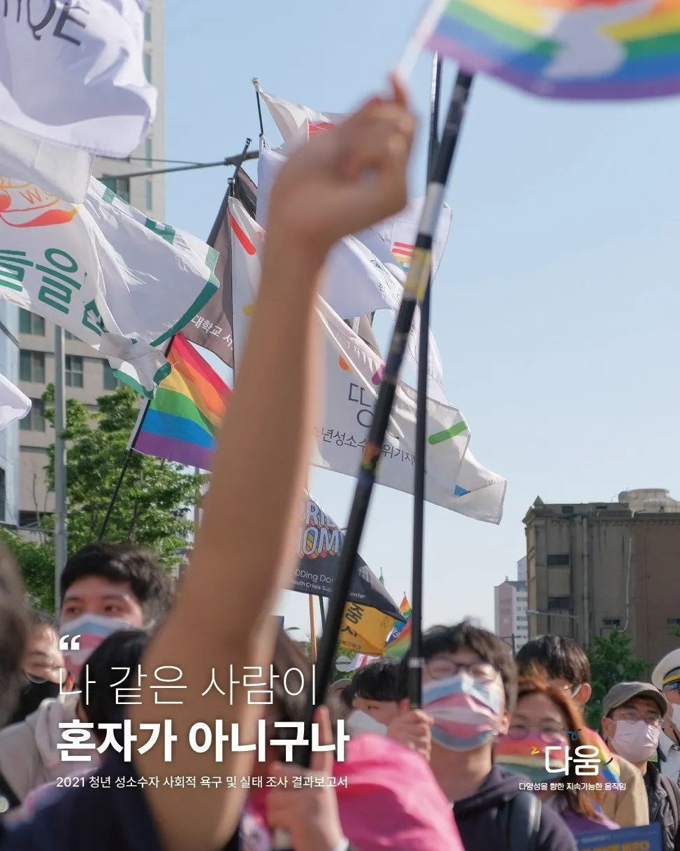 2022년 5월 다움은 2021 청년 성소수자 사회적 욕구 및 실태조사 보고서를 발간했습니다. 이 보고서는 성소수자 정체성과 커뮤니티, 차별 경험, 건강, 주거, 정치사회적 욕구 등 다양한 키워드를 통해 청년 성소수자의 삶을 조사한 결과를 담고 있습니다.